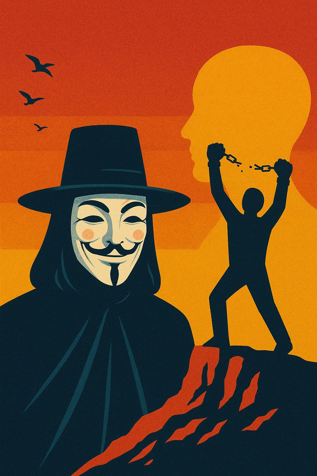 V for Vendetta sadece bir film değil; insanın kendi iç otoritesine karşı verdiği sessiz bir savaşın hikâyesidir. Otoriteye başkaldırmak, aslında kendine sadık kalmaktır. Guy Fawkes maskesi, bu sadakatin sembolüdür. Korkunun yerini cesaretin aldığı, itaatin yerini farkındalığın aldığı o ince çizgide adeta bir kutup yıldızı gibi parlar.